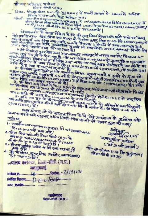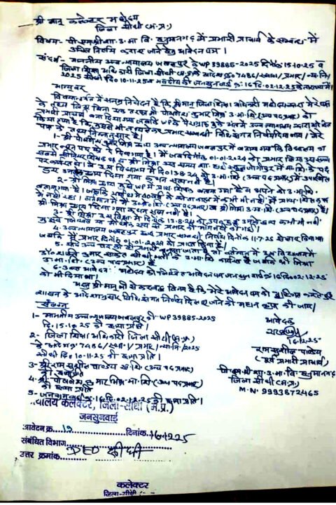 पीड़ित पक्ष ने इस गंभीर अनियमितता के खिलाफ 02 दिसंबर 2025 और 16 दिसंबर 2025 को कलेक्टर सीधी के समक्ष जनसुनवाई में लिखित शिकायतें प्रस्तुत कीं। बावजूद इसके, प्रशासन की चुप्पी हैरान करने वाली है—अब तक न कोई जांच, न कोई निर्णय, और न ही कोई ठोस कार्रवाई सामने आई है।