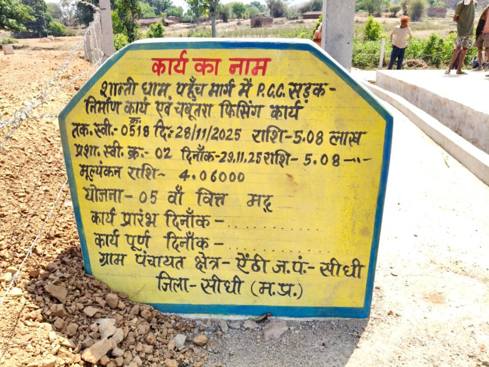 सीधी।जनपद पंचायत सीधी अंतर्गत ग्राम पंचायत ऐठी में निर्माण कार्य पूरा होने के बाद भी मजदूरी भुगतान अटक जाने का गंभीर मामला सामने आया है। शांति धाम पहुंच मार्ग P.C.C. सड़क एवं चबूतरा फिसिंग योजना (5 वें वित्त) के तहत कराए गए निर्माण कार्य का भुगतान अब तक नहीं होने से श्रमिकों और कार्य कराने वाले व्यक्ति दोनों पर संकट गहरा गया है।